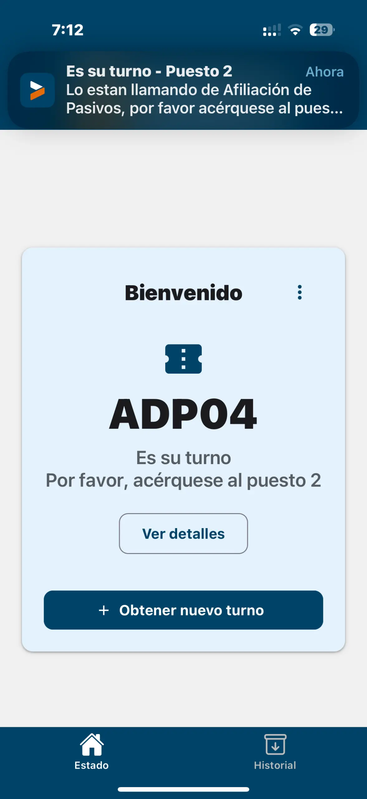 Adelante365 es la app móvil de Servimática que permite a los clientes obtener su número de turno desde el celular, seguir el avance de la cola en tiempo real y recibir notificaciones antes del llamado, mejorando la experiencia de atención presencial y reduciendo la congestión en áreas de espera.